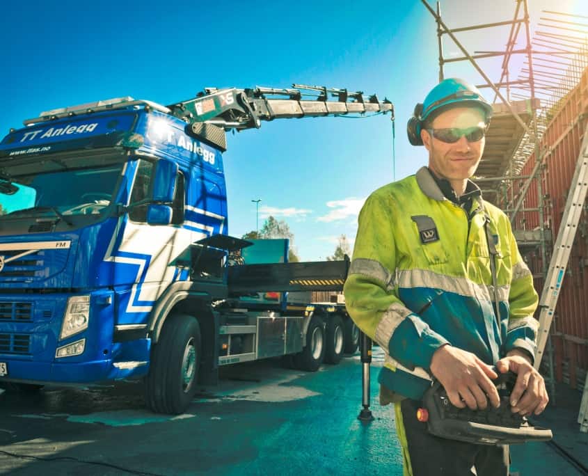 Med mange prosjekter spredt over stort geografisk området er det stort behov for transport av utstyr og materiell. Til det har vi kranbiler som kan både løfte og flytte tunge gjenstander. Vår siste anskaffelse er en kransemi som som gjør at vi kan flytte tunge lass, selv om krana er stor og den kommer lettere frem på vanskelige plasser.